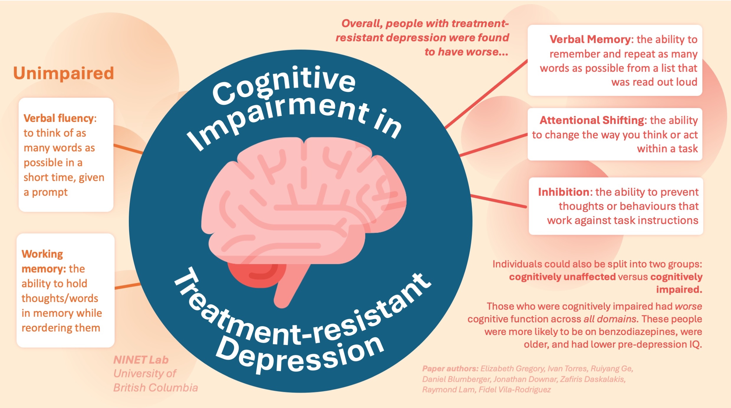 Read more: Memory can improve after rTMS treatment for those with depression-related cognitive symptomsDid you know that poor mood is not the only way to diagnose depression? In fact, cognitive impairment – worsened thinking, concentration, and decision making – is one of nine criteria for the disorder. This impairment is even more common and severe among those who have treatment-resistant depression: a particular case where someone does not improve with standard antidepressant medications. This study assessed changes to cognition 3 months post-rTMS among a group of people with treatment-resistant depression and compared it to people without depression.